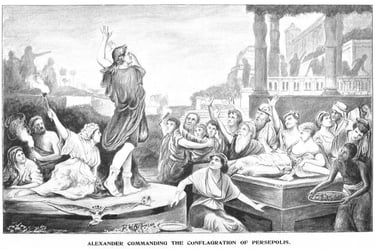 When Darius fell, Alexander saw the field cleared of his last formidable foe. Thenceforward he could spend his time in his own manner, now in the enjoyment of rest and pleasure, and again in the prosecution of some minor conquest. He entered upon a pompous campaign into India, because, according to Grecian fable, Bacchus and Hercules, two sons of Jupiter, whose son he also claimed to be, had done the same. With contemptible arrogance, he claimed for himself divine honors. He gave up conquered cities, freely and unprovoked, to the absolute mercy of his bloodthirsty and licentious soldiery. He himself often murdered his own friends and favorites in his drunken frenzies. He sought out the vilest persons for the gratification of his lust. At the instigation of a dissolute and drunken woman, he with a company of his courtiers, all in a state of frenzied intoxication, sallied out, [56] torch in hand, and fired the city and palace of Persepolis, one of the then finest palaces in the world. He encouraged such excessive drinking among his followers that on one occasion twenty of them together died as the result of their carousal. At length, having sat through one long drinking spree, he was immediately invited to another, when, after drinking to each of the twenty guests present, he twice drank full, says history, incredible as it may seem, the Herculean cup containing six of our quarts. He thereupon fell down, seized with a violent fever, of which he died eleven days later, in May or June, B. C. 323, while yet he stood only at the threshold of mature life, in the thirty-second year of his age.
