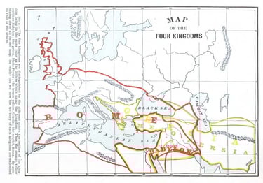 But it may be asked, Why not suppose the two legs to denote division as well as the toes? Would it not be just as inconsistent to say that the toes denote division, and the legs do not, as to say that the legs denote division, and the toes do not? We answer that the prophecy itself must govern our conclusions in this matter; and whereas it says nothing of division in connection with the legs, it does introduce the subject of [65] division as we come down to the feet and toes. It says, “And whereas thou sawest the feet and toes, part of potters’ clay and part of iron, the kingdom shall be divided.” No division could take place, or at least none is said to have taken place, till the weakening element of the clay was introduced; and we do not find this till we come to the feet and toes. But we are not to understand that the clay denotes one division and the iron the other; for after the long-existing unity of the kingdom was broken, no one of the fragments was as strong as the original iron, but all were in a state of weakness denoted by the mixture of iron and clay. The conclusion is inevitable, therefore, that the prophet has here stated the cause for the effect. The introduction of the weakness of the clay element, as we come to the feet, resulted in the division of the kingdom into ten parts, as represented by the ten toes; and this result, or division, is more than intimated in the sudden mention of a plurality of contemporaneous kings. Therefore, while we find no evidence that the legs denote division, but serious objections against such a view, we do find, we think, good reason for supposing that the toes denote division, as here claimed.3. Each of the four monarchies had its own particular territory, which was the kingdom proper, and where we are to look for the chief events in its history shadowed forth by the symbol. We are not, therefore, to look for the divisions of the Roman empire in the territory formerly occupied by Babylon, or Persia, or Grecia, but in the territory proper of the Roman kingdom, which was what was finally known as the Western empire. Rome conquered the world; but the kingdom of Rome proper lay west of Grecia. That is what was represented by the legs of iron. There, then, we look for the ten kingdoms; and there we find them. We are not obliged to mutilate or deform the symbol to make it a fit and accurate representation of historical events.