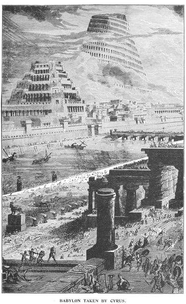 In their very feeling of security lay the source of their danger. Cyrus resolved to accomplish by stratagem what he could not effect by force; and learning of the approach of an annual festival, in which the whole city would be given up to mirth and revelry, he fixed upon that day as the time to carry his purpose into execution. There was no entrance for him into that city except he could find it where the River Euphrates entered and emerged, passing under its walls. He resolved to make the channel of the river his own highway into the stronghold of his enemy. To do this, the water must be turned aside from its channel through the city. For this purpose, on the evening of the feast-day above referred to, he detailed three bodies of soldiers, the first, to turn the river at a given hour into a large artificial lake a short distance above the city; the second, to take their station at the point where the river entered the city; the third, to take a position fifteen miles below, where the river emerged from the city; and these two latter parties were instructed to enter the channel, just as soon as they found the river fordable, and in the darkness of the night explore their way beneath the walls, and press on to the palace of the king, where they were to meet, surprise the palace, slay the guards, and capture or slay the king. When the water was turned into the lake mentioned above, the river soon became fordable, and the soldiers detailed for that purpose followed its channel into the heart of the city of Babylon. [50]
