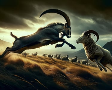 VERSE 5. And as I was considering, behold, an he-goat came from the west on the face of the whole earth, and touched not the ground: and the goat had a notable horn between his eyes. 6. And he came to the ram that had two horns, which I had seen standing before the river, and ran unto him in the fury of his power. 7. And I saw him come close unto the ram, and he was moved with choler against him, and smote the ram, and brake his two horns: and there was no power in the ram to stand before him, but he cast him down to the ground, and stamped upon him: and there was none that could deliver the ram out of his hand.