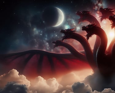 VERSE 1. And there appeared a great wonder in heaven; a woman clothed with the sun, and the moon under her feet, and upon her head a crown of twelve stars: 2. And she being with child cried, travailing in birth, and pained to be delivered. 3. And there appeared another wonder in heaven; and behold a great red dragon, having seven heads and ten horns, and seven crowns upon his heads.